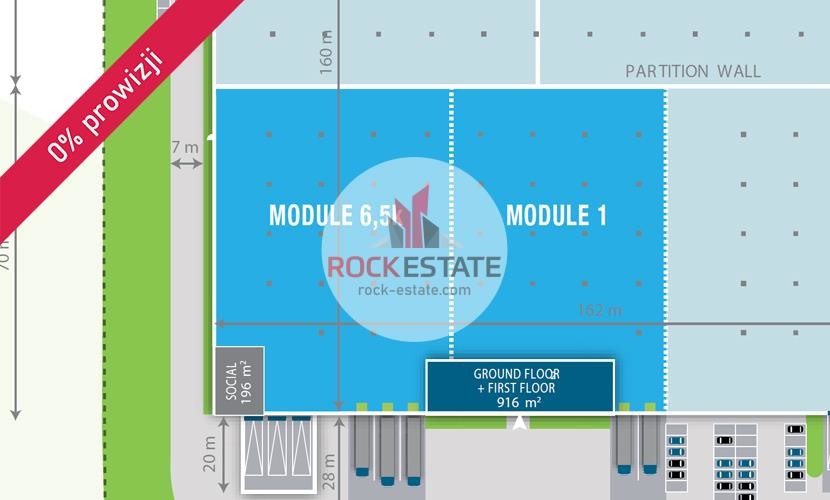 Moduł o powierzchni 6565 m2 w cenie 3,26 EUR/m2. Cena jest przybliżoną stawką i zawsze podlega indywidualnym negocjacjom.